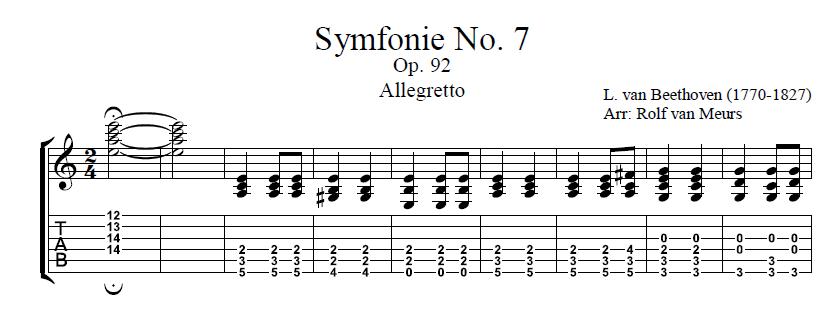 Artist & Title: Beethoven – Symphony 7 (Allegretto) Arranged For Classical Guitar