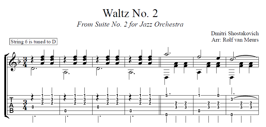 Artist & Title: Dmitri Shostakovich – Waltz No. 2 Arranged For Classical Guitar