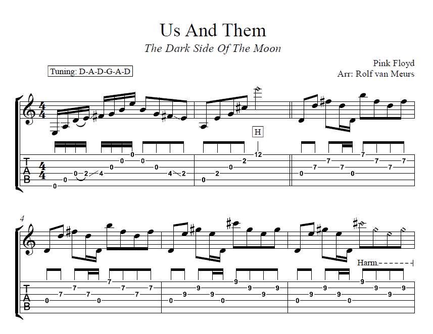• Artist & Title: Pink Floyd – Us And Them (Fingerstyle Guitar)