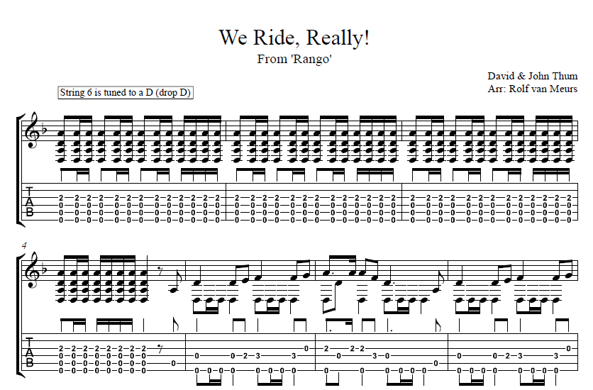 Rango – We Ride, Really – Classical Guitar Tab