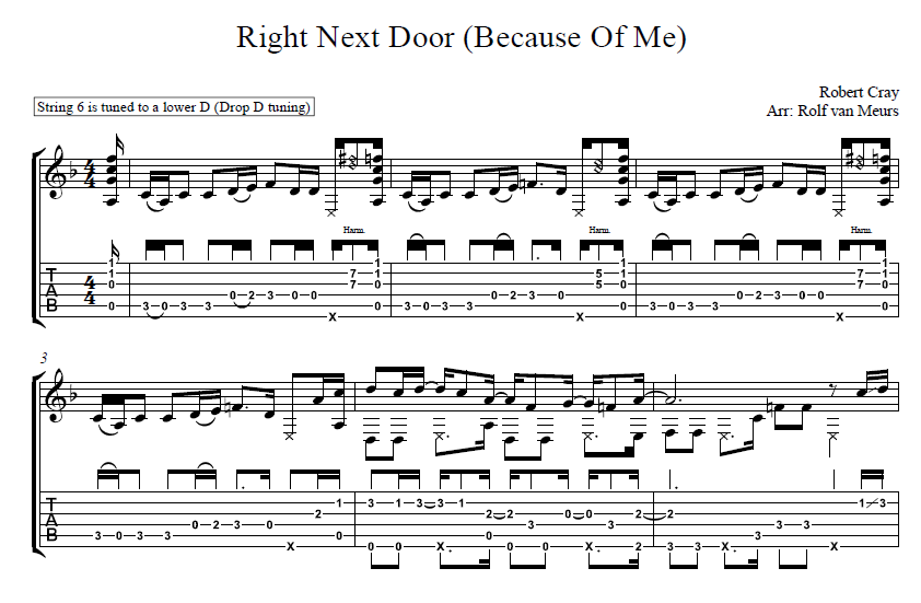 Robert Cray – Right Next door (Because Of Me) Fingerstyle Guitar Tab